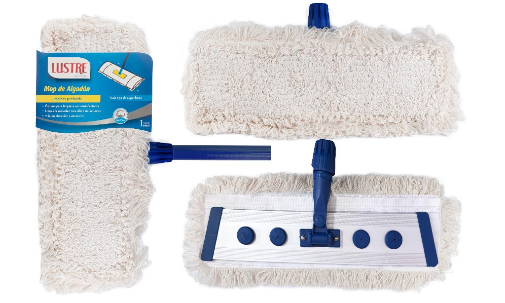 Productos esenciales para el cuidado y limpieza de pisos, incluyendo algodón o microfibra para una limpieza profunda, y sistemas para la limpieza en seco. Ideales para remover líquidos y polvo en todo tipo de superficies.