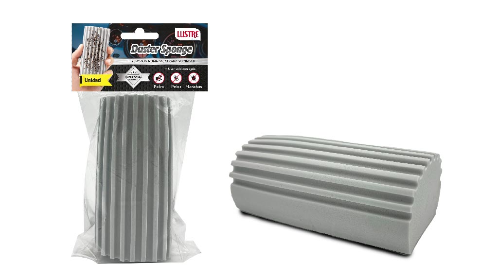 Es una esponja especializada diseñada para atrapar la suciedad y el polvo sin necesidad de productos químicos. Está hecha para ser usada solo con agua y su composición ayuda a eliminar polvo, pelos y manchas. Es ideal para la limpieza rápida de superficies internas y externas del automóvil.